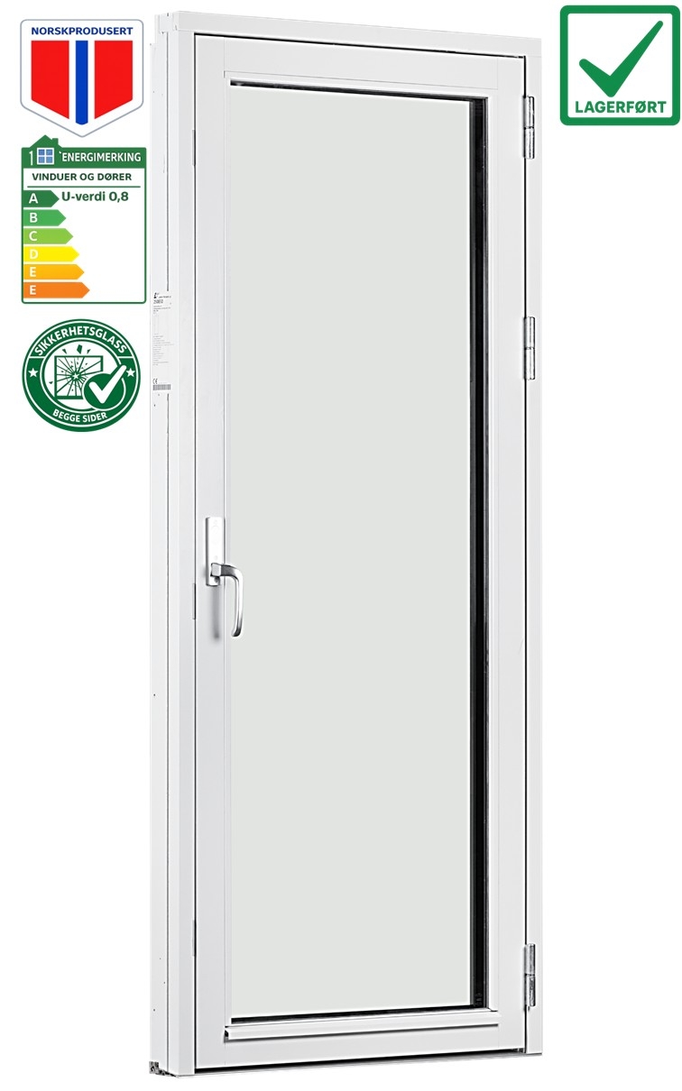 Balkongdør 80x210cm Høyre 3-lags U 0,8 Passiv