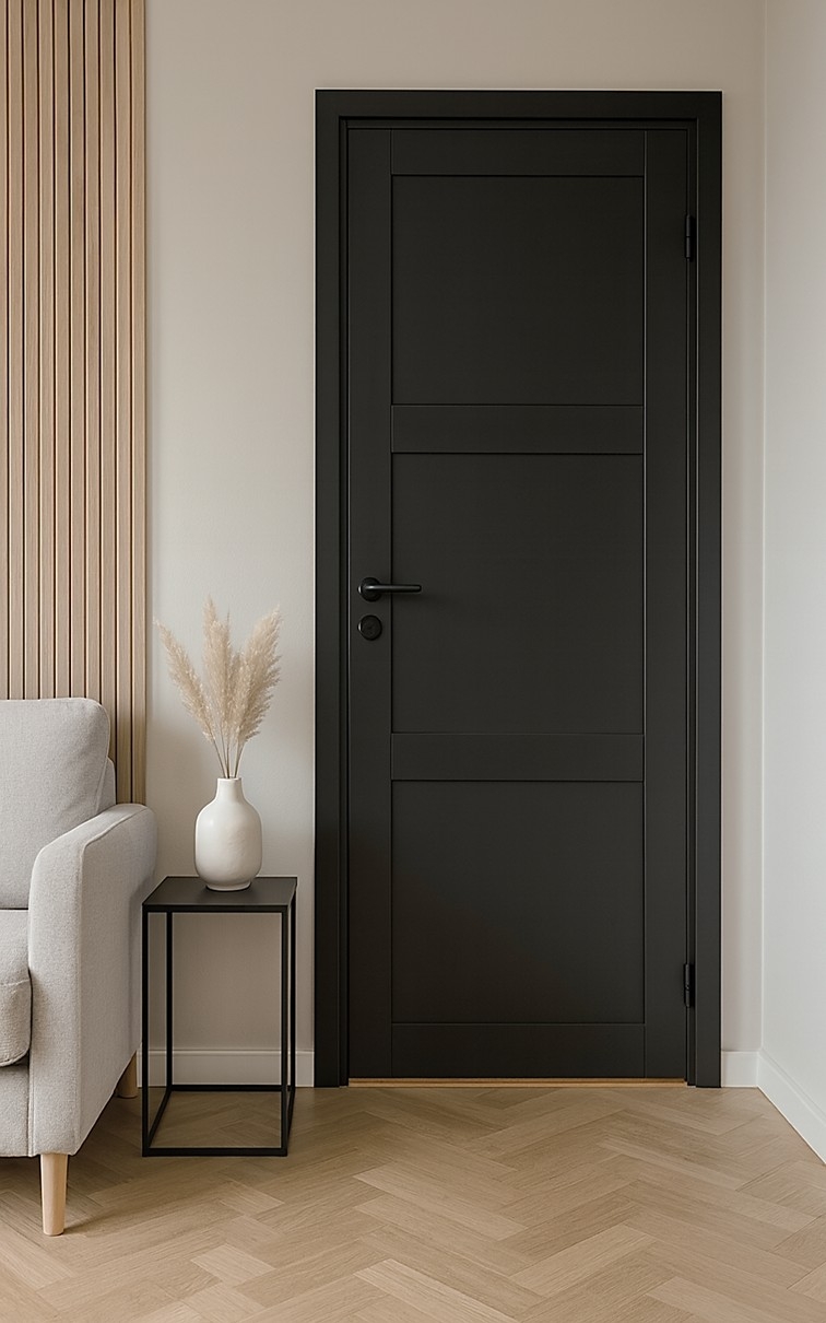 Innerdør i massiv heltre moderne 3-speil malt i dempet sort NCS S8500N Uten karm