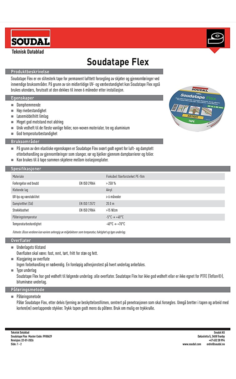 Soudatape Damptett Flex 60mm X 25m Soudatape Flex er en holdbar tape for permanente lufttette forseglinger av overlapper og penetrasjoner i innvendige applikasjoner. TilbudNOK379,00 Førpris:NOK769,00 Rabatt -51% inkl. mva. På lager Antall Kjøp Ønskeliste Vipps hurtigkasseKjøp nå med Vipps hurtigkasse Artikkelnr.: 125014 Del dette Produktinfo Produktanmeldelser (0) Teknisk datablad Skriv en produktanmeldelse og del dine erfaringer med dette produktet med andre kunder. Email Navn Din vurdering? 1 star 2 star 3 star 4 star 5 star 6 star Oppgi en tittel for anmeldelsen din Skriv inn produktanmeldelsen i feltet under