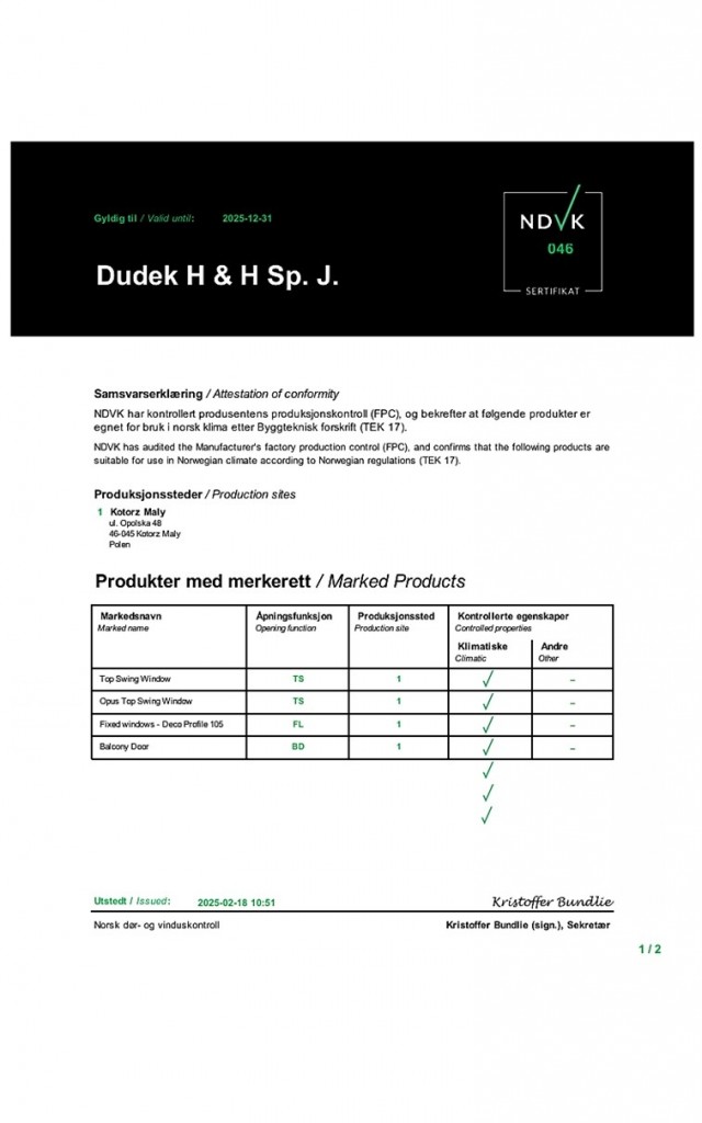- Norsk dør- og vinduskontroll testet og sertifisert