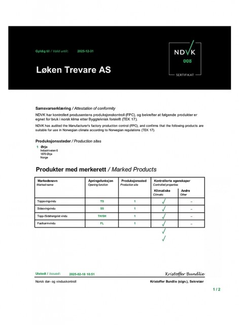 - Norsk dør- og vinduskontroll testet og sertifisert