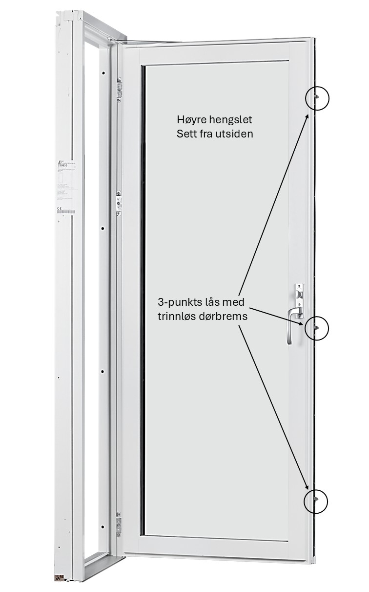Balkongdør 80x210cm Høyre 3-lags U 0,8 Passiv